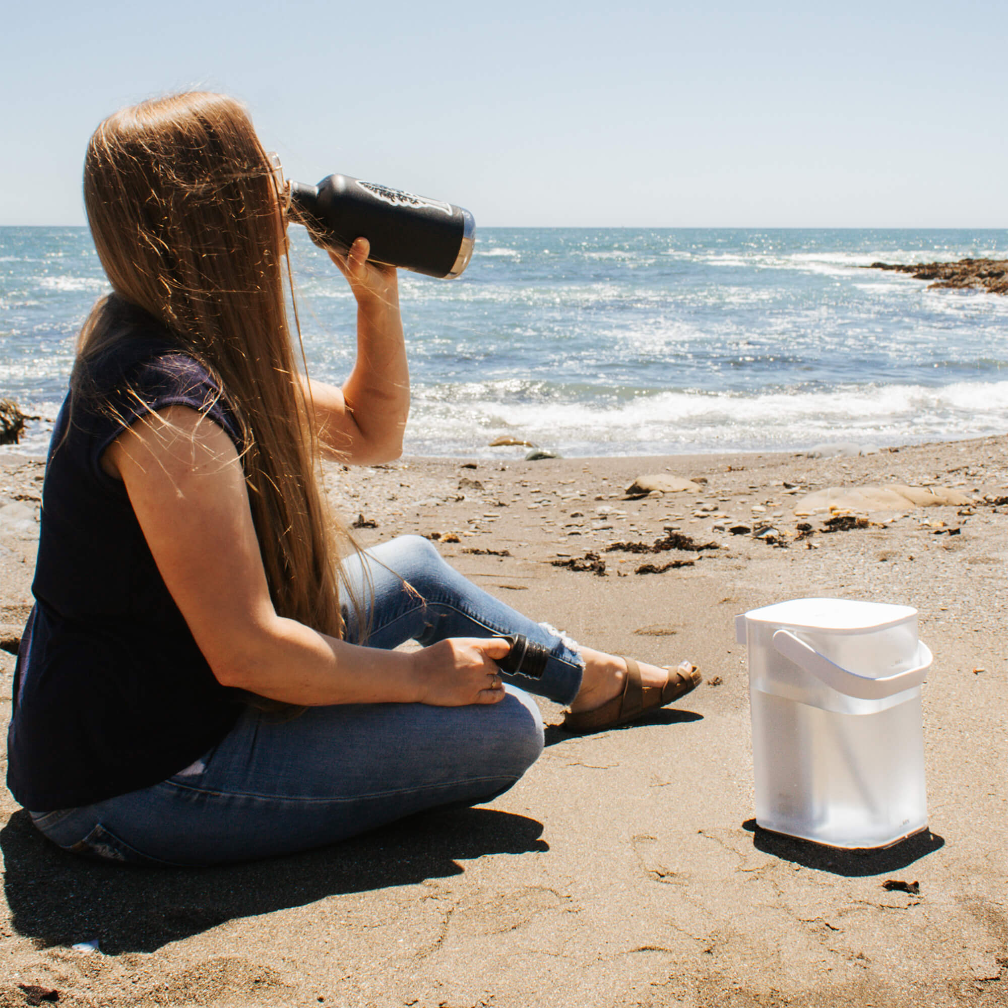 2. Please charge the system by inserting a 5V/2A USB cable into the charging port on the side surface of the water pumping unit. (Note: Please use a 5V/2A power adapter plug to charge it. If the charging current is smaller than 2A, the charging time will be prolonged accordingly. The expected charging time may last 4-5 hours, and this system can be used while being charged.